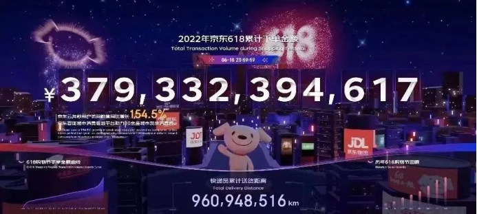 6月19日凌晨,京东公布了今年618累计下单金额:截止到6月18日晚23:59,累计下单金额超3793亿元,去年同期为3438亿元。