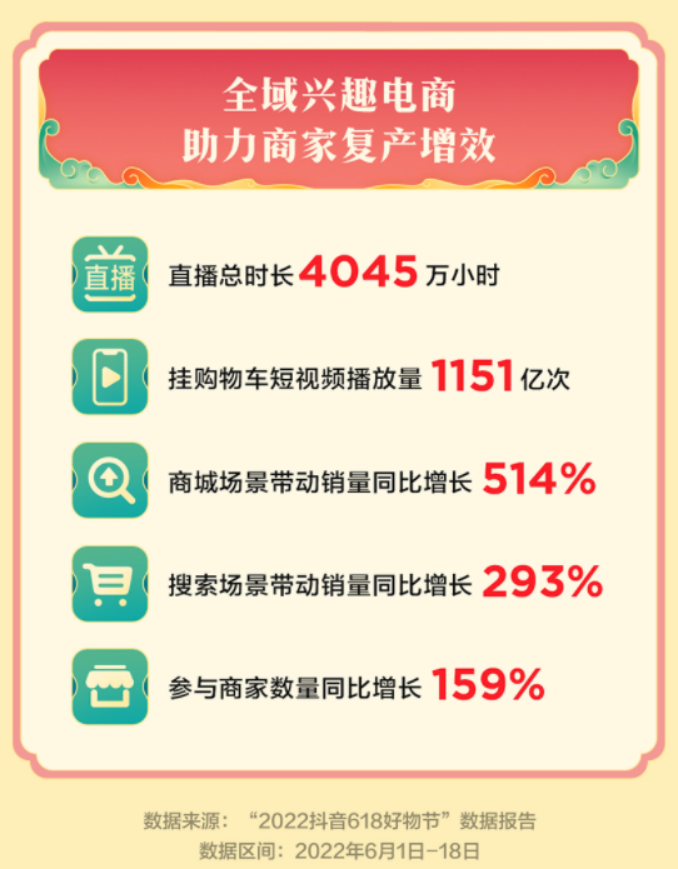 对于抖音电商来说,618前夕罗永浩宣布隐退,缺少了头部主播的看点,而新东方的爆火也让平台赚足了眼球。至于618战绩,抖音电商依旧淡化GMV,公布了一些“不痛不痒”的数据:直播总时长达4045万小时,挂购物车短视频播放量1151亿次,参与活动的商家数量同比增长159%等。