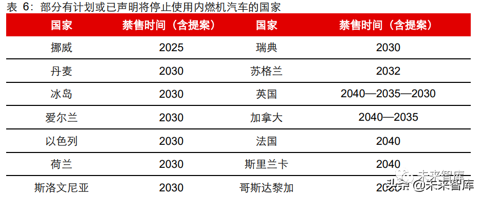 近 10 年,全球各国从环保、技术和能源安全角度出发,纷纷推动汽车电气化发展。汽 油、柴油等化石燃料优势不在,全球节能减排的大趋势削弱了化石燃料作为未来交通出 行能源的前景。近年来,随着全球各国对新能源汽车的重视,挪威、荷兰、法国、西班 牙、日本等国明确了燃油车的禁售时间;美国、中国等国家也出台了对未来新能源车渗 透率的指引,部分省份地区也出台了禁售政策。
