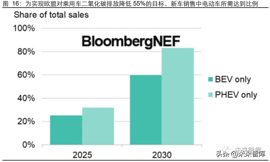 此外,全球新能源汽车利好政策频发,行业中长期发展的确定性进一步得到夯实。继欧 洲委员会于 2021 年 7 月 14 日再度提案加码乘用车减排力度,有望在 2030 年实现 55% 的减排量,2035 年实现新车净零排。根据上述目标推算,2030 年出售的新车中至少有 60%应为电动车。8 月,拜登政府制定了 2030 年美国新能源车渗透率达到 50%的目标, 并计划推动 CAFÉ 油耗经济性标准的重新修订,全球进入新一轮政策加码期。