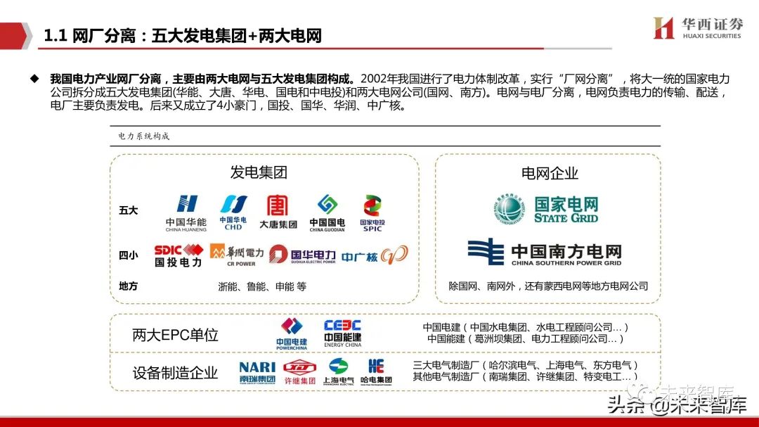 1.1 网厂分离:五大发电集团+两大电网