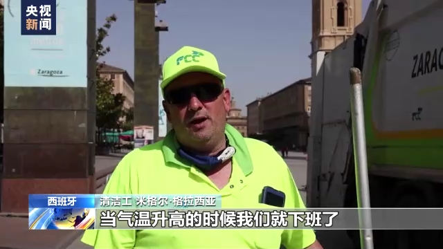 清洁工 米格尔·格拉西亚:到目前为止我们还好,我们很幸运,因为我们是早班,当气温升高的时候我们就下班了,我们下午班的同事就遭罪了。