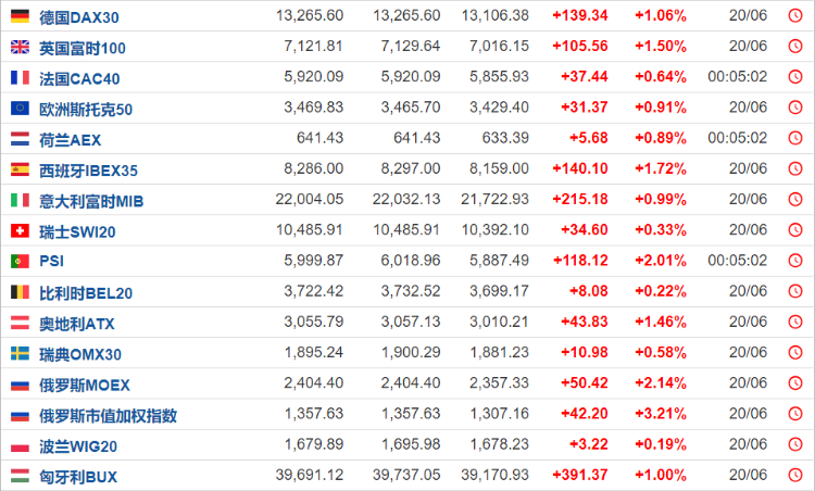 欧股三大股指集体收涨,欧央行行长重申加息计划