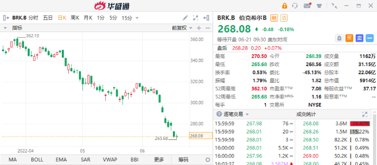 随着美股大盘持续疲弱,在4月暂停回购股票之后,巴菲特旗下的伯克希尔 $BRK.A $BRK.B 在过去六周的时间内再度斥资约13亿美元进行股票回购。