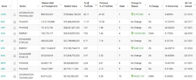 在多重因素综合作用下,油价2020年至今涨幅巨大,也带动了油气股成为这两年股市的赢家。尤其是在今年,油气股走势甚至出现加速上扬的态势。股神巴菲特在今年3月至5月疯狂买入西方石油,使其成为了伯克希尔的第6大重仓股。事实上,同属于原油能源行业的雪佛龙,也是巴菲特的第四大持仓股。