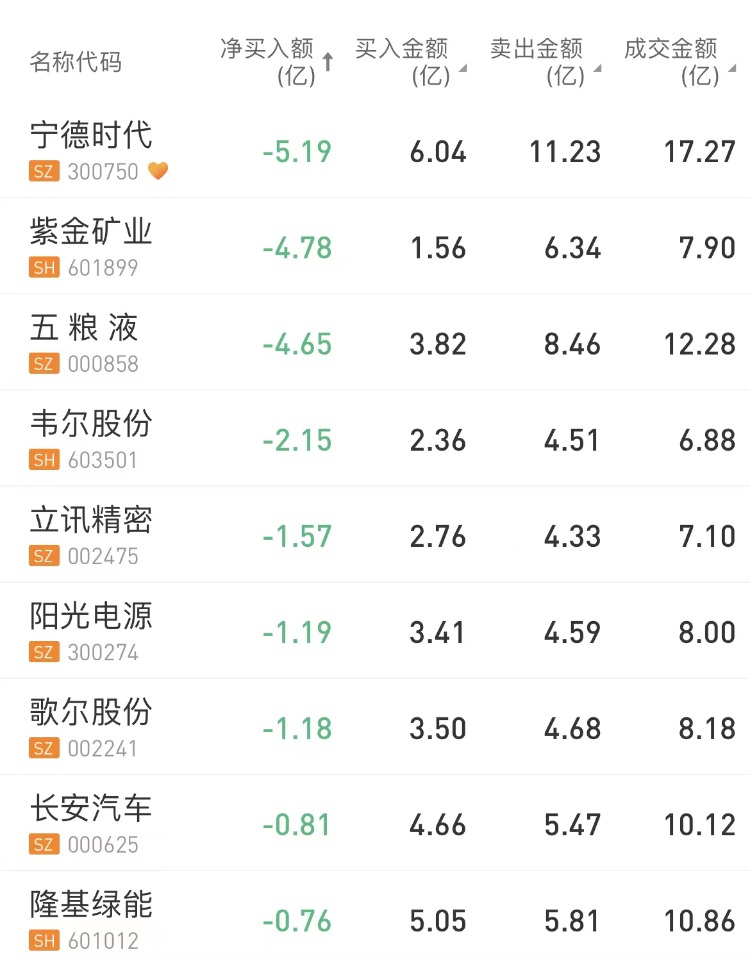 今日北上资金净卖出宁德时代5.19亿元,紫金矿业遭净卖出4.78亿元。