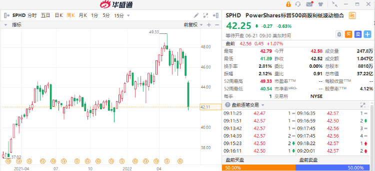Invesco S&P 500® High Dividend Low Volatility ETF (NYSE:SPHD)投资于50只高股息收益率和低波动的标准普尔500股票。