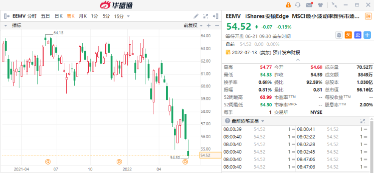 EEMV在2021年11月达到历史高点,但自1月以来已经下跌了13.2%。该基金目前的P/E和P/B分别为13.59倍和1.89倍。寻找新兴市场风险敞口的投资者应该将EEMV纳入观察列表。