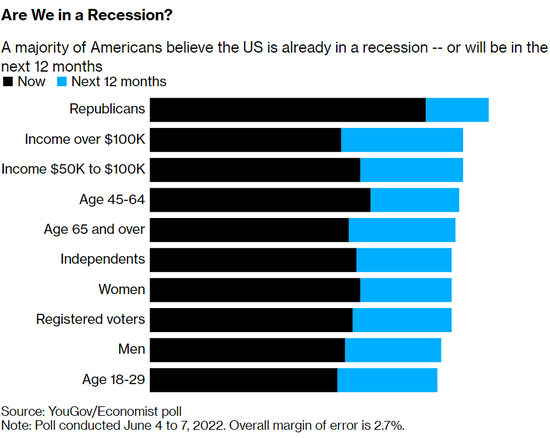 此外,随着食品杂货和水电费的飙升,许多美国家庭的退休基金也不断缩水。这些家庭对美国经济未来走向的看法比40多年来的任何时候都要悲观。