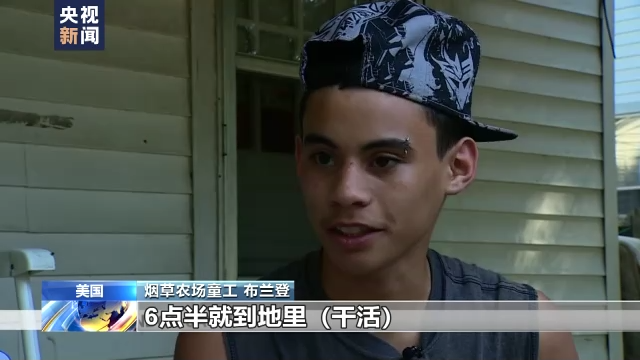 烟草农场童工 布兰登(15岁):我们经常每天工作12个小时,我每天早上4点醒来,6点半就到地里(干活),要干到晚上8点或8点半。