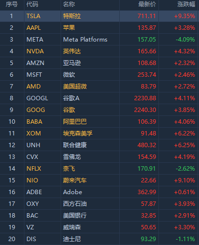 第17名西方石油公司收高3.93%,成交17.9亿美元。最近巴克莱银行分析师将西方石油目标股价从74美元上调至84美元,并维持“增持”评级。