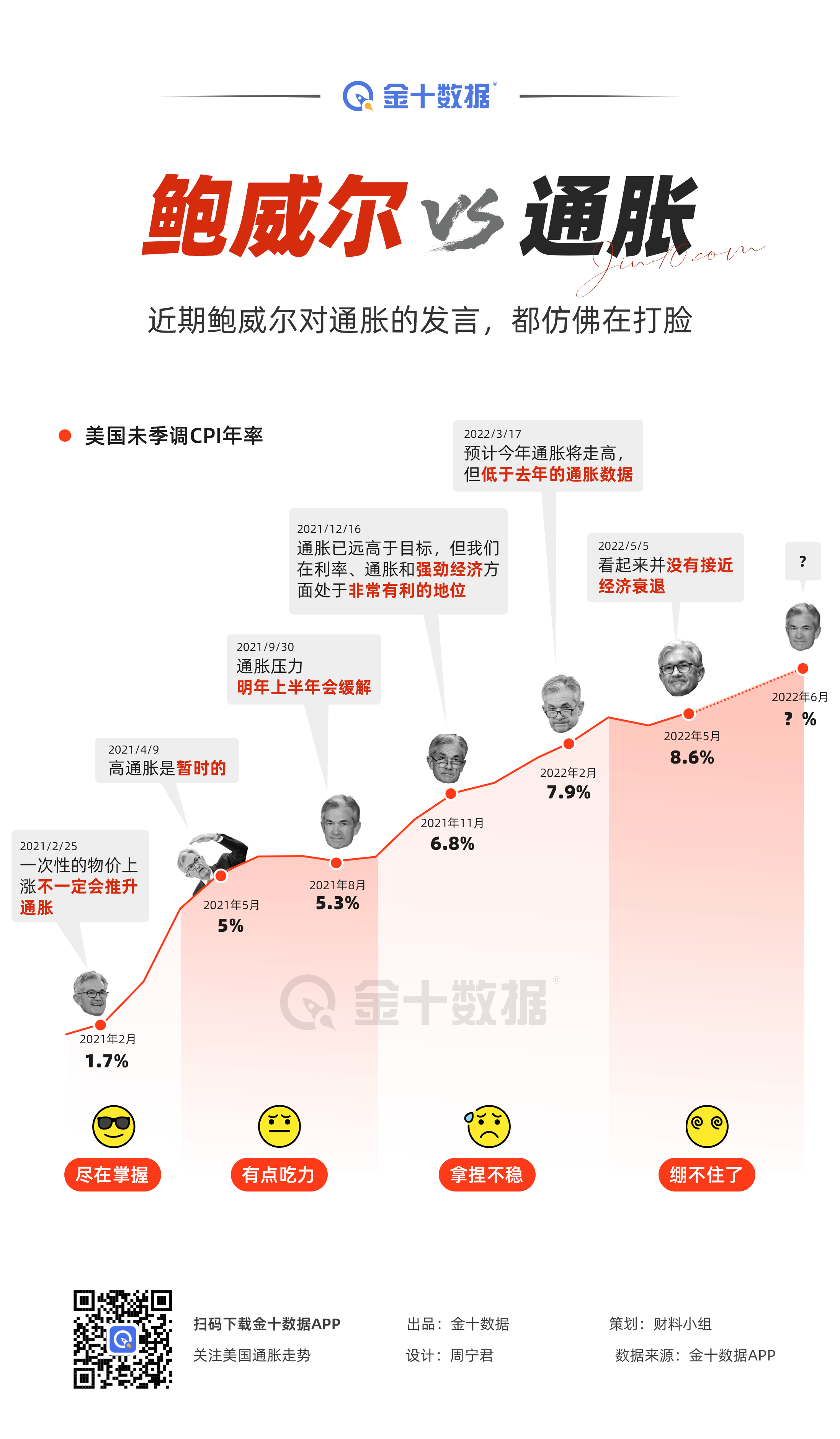 去年,鲍威尔说通胀没问题,今年美国CPI年率创40年新高;现在他说看不到衰退迹象,那结果会是……?今晚21:30,鲍威尔听证会证词陈述,且看他能否冲破“打脸”魔咒!