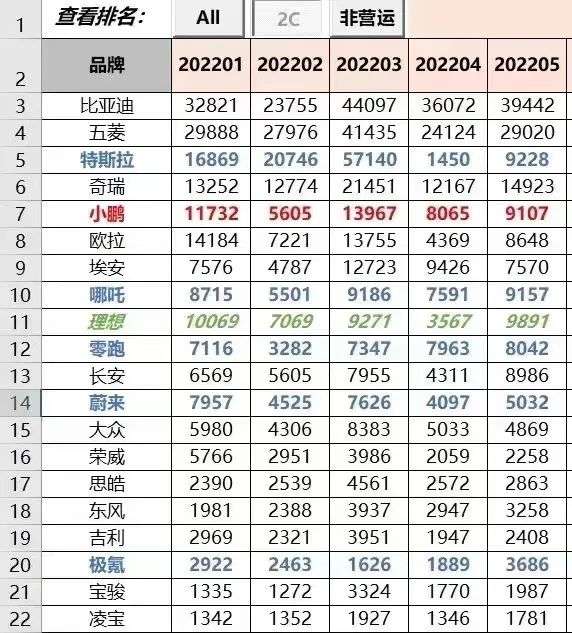数据显示,新能源toC端上险数中,2022年,比亚迪、特斯拉具备明显领先优势。