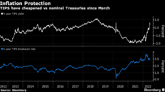 备受关注的美国国债收益率曲线上周再度出现倒挂,为数月来首次,此前美国公布的通胀数据高于预期,促使美联储20多年来首次加息75个基点。此举削弱了对通胀保值国债的需求,该类国债表现不佳。
