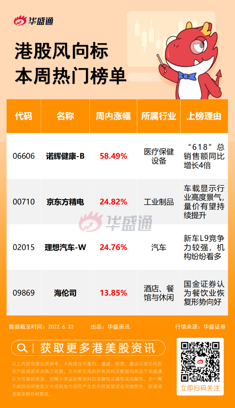 港股风向标丨周内暴涨58%!诺辉健康“618”战绩显赫;理想新车亮相获众机构唱多