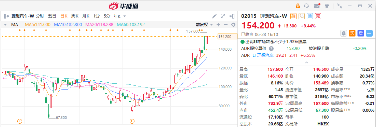 - 海内外机构纷纷发布研究报告看多理想汽车。其中,中金公司认为,L9较同级别的燃油车型实现了多维度的领先优势,有望成为继理想ONE之后的又一爆款车型。考虑到公司后续强成长性,该行认为当前仍具吸引力。摩根士丹利也重申理想汽车“增持”评级,认为新推出的SUV L9可赢得投资者对其提升销量信心。