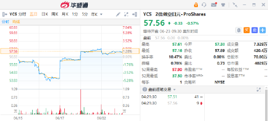 4、日元狂贬创24年新低,日本央行坚守超宽松货币政策,两倍做空日元ETF $YCS 年内累涨38%