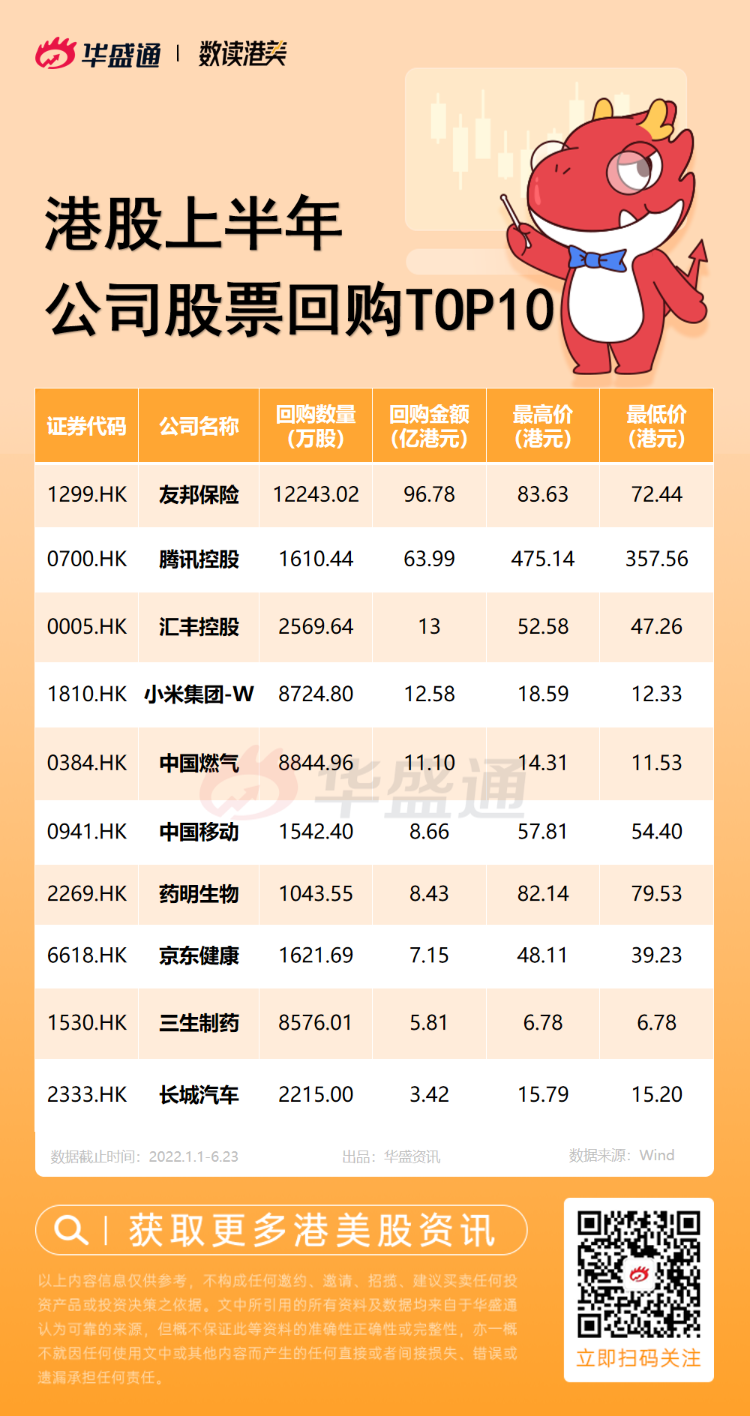 从回购金额排名来看,友邦保险、腾讯控股、汇丰控股位居前三。此外,小米集团、中国燃气、中国移动也位居前列。