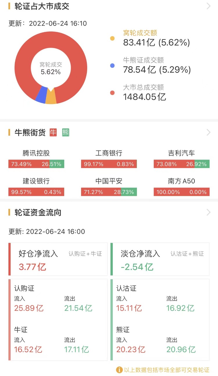其中,窝轮总成交额为83.41亿港元,牛熊证总成交额为78.54亿港元。