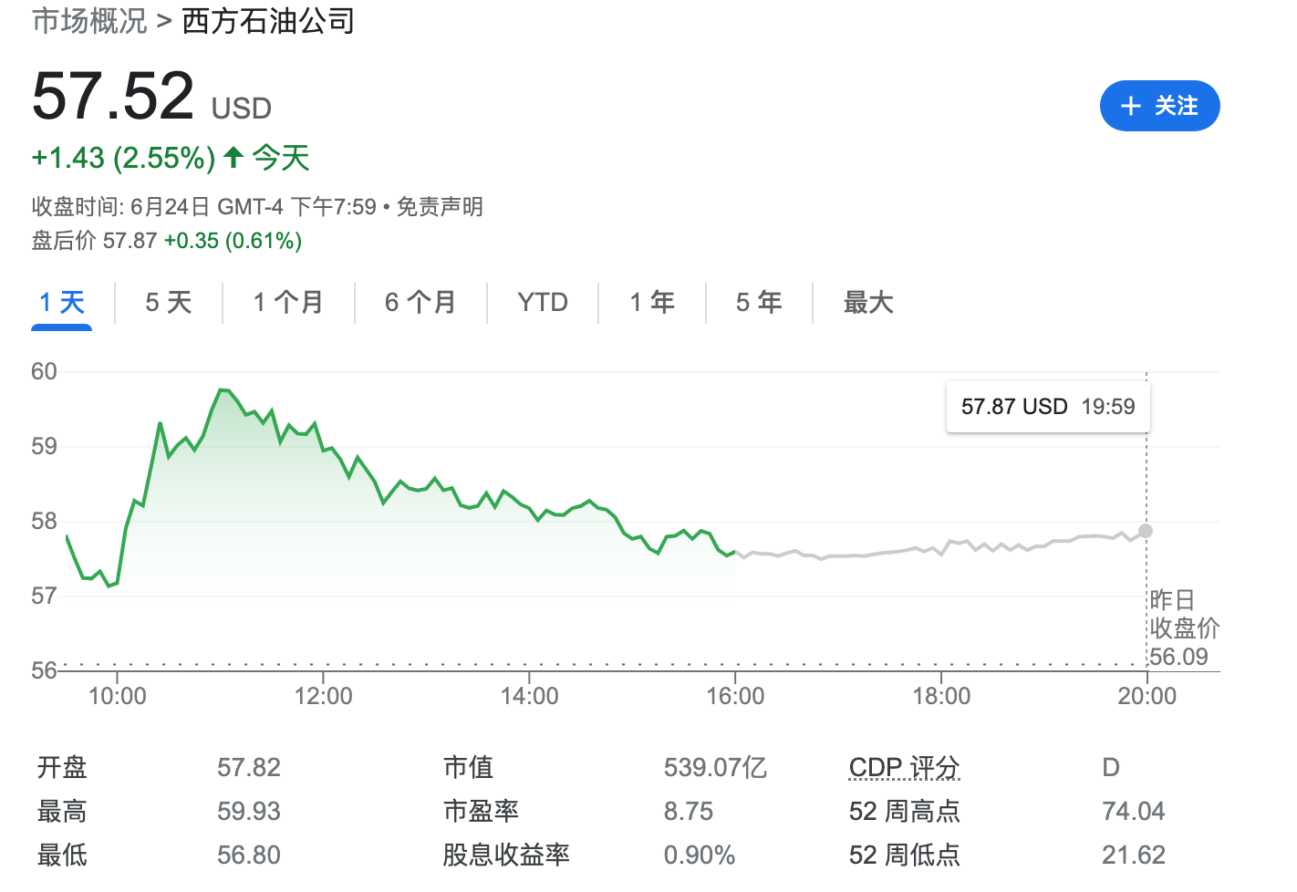 Dingamm将西方石油目标价设为93美元。西方石油股价周五上涨2.55%,收于57.52美元,得益于油价飙升,今年以来该股已经累计上涨近90%。