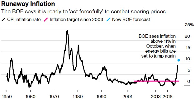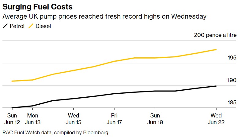 半个月以来,国际油价跌幅超8%,然而,由于英国国内炼油产能严重不足,英国加油站汽油和柴油价格每天都在刷新纪录。在持续飙升的油价及各类商品价格驱动下,英国5月通胀率达到惊人的9.1%,续创40年来新高。