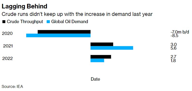 随着新设施开始陆续投入建设进程,今年西方国家炼油瓶颈可能将开始有所改善。英国和欧盟距离禁止从俄罗斯进口原油和燃料仅仅过去几个月的时间,现在已经迫切需要储备燃料以应对寒冬及未来可能再度出现的能源危机,但很少有地区的产能可以填补如此巨大的空白。