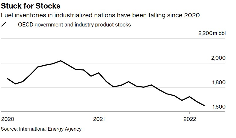 燃料库存方面,统计数据显示,欧美国家库存一直处于下降趋势,主要因闲置炼油厂数量增多。据了解,一些大型石油公司关闭了炼油厂,而且目前仍然未恢复生产计划,燃料库存因此处于下降趋势。