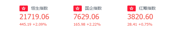 恒生指数上周涨3.06%,报21719点;恒生科技指数上周涨4.11 %,报4844点;国企指数上周涨3.55%,报7629点。截至6月24日上周五收盘,恒生指数涨2.09%,恒生科技指数涨4.05%,舜宇光学科技涨近9%,小鹏涨超7%,哔哩哔哩涨逾6%。