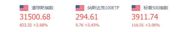 道琼斯指数上周涨5.39%,报31500点;纳斯达克指数上周涨7.49%,报11607点;标普500上周涨6.45%,报3911点。截至6月24日美股上周五大幅收高,道指涨逾820点,纳指涨涨幅为3.34%,特斯拉收高4.48%,苹果收高2.59%,阿里收高4.91%。