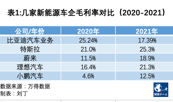 但同样是面对原材料涨价和政府购车补贴下降,蔚来(NYSE:NIO)、理想汽车(NASDAQ:LI)、小鹏汽车(9868.HK)、特斯拉的毛利率却不断提升。