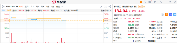 BioNTech SE盘前一度涨近5%。辉瑞和德国BioNTech SE发布声明称,两家公司针对奥密克戎开发的两款新冠疫苗在二期临床试验中均引发了“高度免疫应答”。报道称最高剂量的针对奥密克戎变异株的辉瑞-BioNTechSE新冠疫苗中和抗体水平较当前疫苗提高了19.6倍。