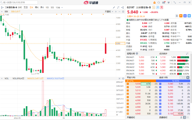 华盛资讯6月28日消息,三叶草生物开盘拉升涨35%,报5.04港元每股,成交额4651万港元,公司新冠候选疫苗作为同源加强针显示出对奥密克戎的强烈交叉中和作用。