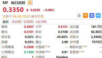 每日优鲜盘初涨超8%,近一段时间以来,每日优鲜新老业务齐发力,主营前置仓业务迎来即时零售风口,价值持续释放,新业务智慧菜场和零售云进展顺利,或将拉动公司实现价值回归。