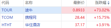 华盛资讯6月28日消息,中概股延续涨势,旅游股盘初暴涨,途牛涨超70%,携程网涨超15%,华住酒店涨超3%。