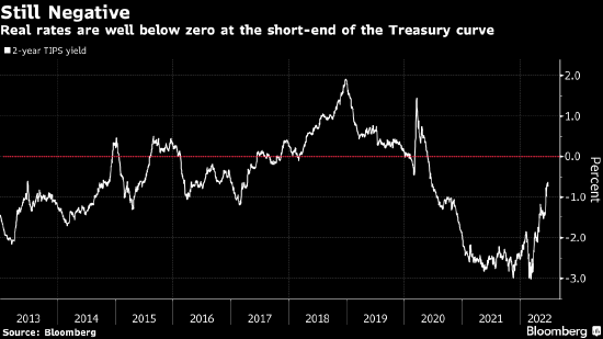 “美联储想要的是锚定通胀预期,” 从事通胀保值投资的Winshore Capital Partners LP的管理合伙人Gang Hu表示。“鲍威尔之所以关注收益率是否为正是因为他希望明确表明,当基准利率达到3%-4%左右的目标时,通胀要下降,政策利率水平必须高于可预见的通胀预测”。