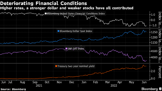 然而,虽然衡量金融状况的指标今年有所下降,但投资者对股票和债券的定期抄底时而给市场提供了一些喘息之机,这令美联储的任务变得更为复杂。与此同时,在通胀方面,鲍威尔上周在国会作证时重申,遏制通胀飙升是头等要务,美联储将继续加息以给通胀降温。