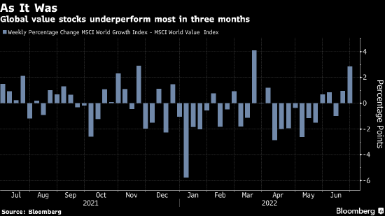 “我们正处于经济放缓的过程中,长期通胀预期似乎正在下降,” 放弃了长期以来对价值股做多观点的富国银行股票策略主管Christopher Harvey表示,“大约两周前,我们从周期性股票阵营转向。”