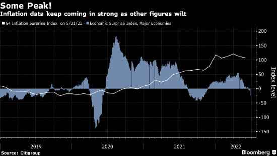 然而,依然有很多理由保持对通胀的对冲。花旗意外指数显示,到目前为止,尽管其他数据低于预期,但主要经济体的通胀数据仍超出预期水平。