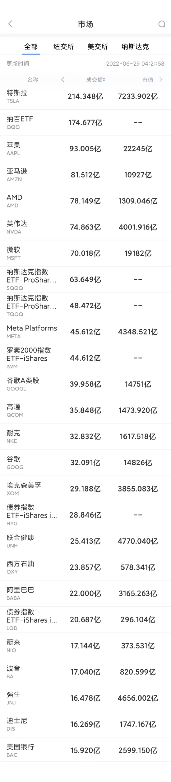以下为美股当日交易最活跃的20只股票(按成交额):