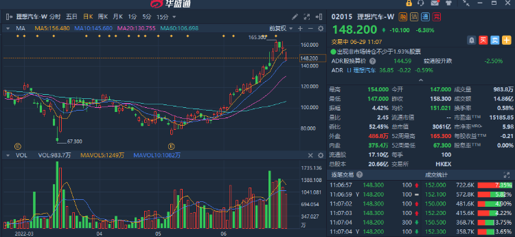 兴业证券6月23日也曾发布研报称:新能源车行业前景广阔,理想汽车深耕客户需求,增长前景广阔。伴随今明年多款增程及纯电车型陆续上市,理想的产品矩阵及竞争力将进一步得到加强。预计22-24年有望实现销量18.4/32.2/55.1万辆,实现营业收入638.67/1174.41/1873.54亿元,给予理想目标价199.4港币,对应2023年3xPS。