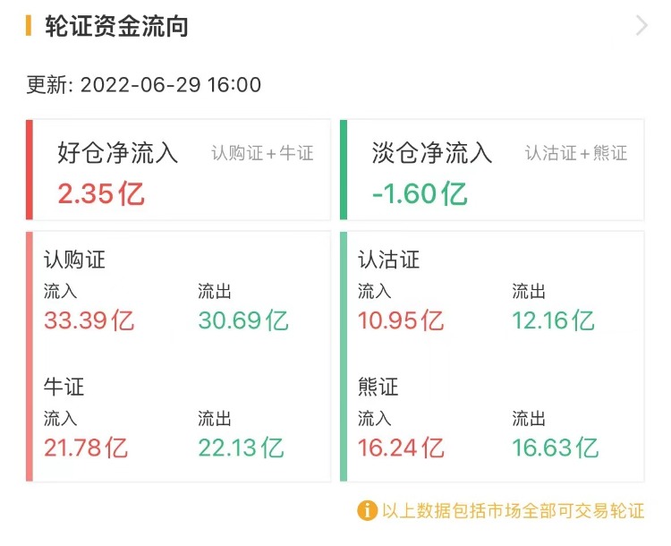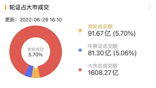 其中,窝轮总成交额为91.67亿港元,牛熊证总成交额为81.30亿港元。
