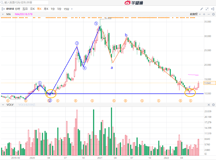 先直接上编者结论:小米底部或已经确认,未来再跌破10港元甚至12港元的概率较小。(仅代表个人观点,供读者参考)