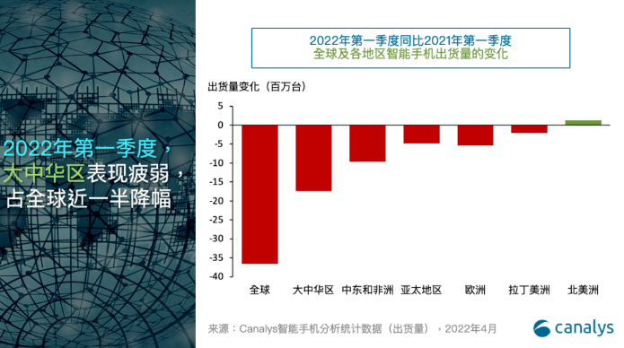 据Canalys的报告显示,今年第一季度,全球智能手机出货量达到3.112亿台,同比下降了11%。另一家市场调研机构Counterpoint Research报告则显示,受零部件短缺、疫情反复等因素影响,全球智能手机出货量同比下降7%,环比下降12%。