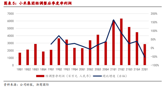 今年上半年,小米业绩表现经受了多重考验,包括去年同期的高基数、持续的上游元器件供应紧张、行业内竞争加剧、宏观经济和消费疲软、疫情反复以及海外俄乌冲突等多方利空,调整后净利润经历了近几年来的首次负增长(同比-53%),近为28.6亿元。
