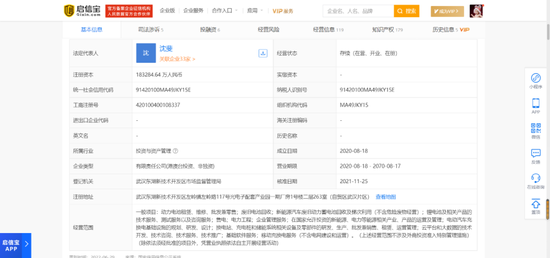 报告中提到的武汉蔚能与蔚来关系颇深。启信宝数据显示,武汉蔚能于2020年8月成立,法定代表人为蔚来汽车能源副总裁沈斐,注册资本达8亿元。其由蔚来、宁德时代新能源科技股份有限公司、国泰君安国际控股有限公司和湖北省科技投资集团有限公司三家企业共同投资成立。