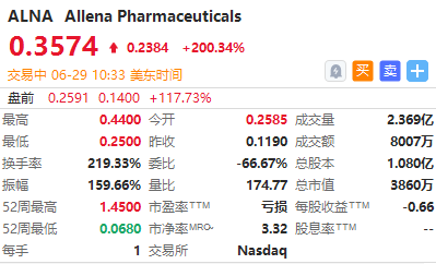 Allena $ALNA 股价暴涨200%,公司周二表示,终止了与B.Riley Securities的普通股在市场上的销售协议,从周一起生效。根据一份监管备案文件,截至周一,该公司已根据出售协议出售了近680万股股票。