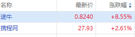 华盛资讯6月29日消息,中概旅行概念股延续昨日涨势,途牛涨超8%,携程涨超2%。工信部今日宣布即日起取消通信行程卡“星号”标记。