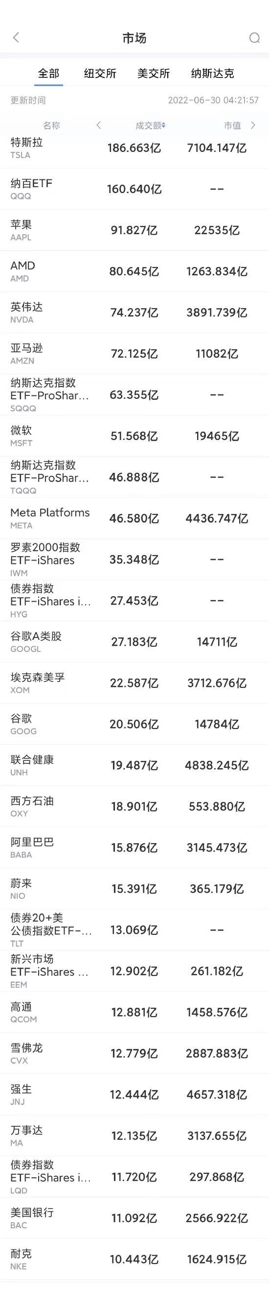 第2名苹果公司收高1.3%,成交91.8亿美元。