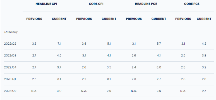 不过政策制定者和专业预测机构,却都对美国控制通胀充满信心,他们预测通胀数据最快将在2023年初就出现明显下降。美联储预计到2023年,核心PCE将回落至2.5%-2.8%之间,费城联邦储蓄银行预测,2023年一季度核心PCE降低至2.8%。