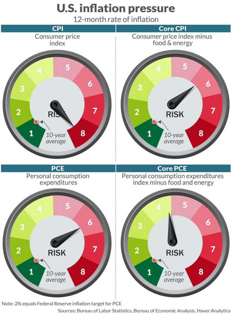 通胀衍生品交易员也支持这一观点,他们在过去的一年里,大部分时间都有准确预测通胀的记录,他们预计,今年还将有四个月时间,CPI会高于破纪录的8.6%,而略低于9%。